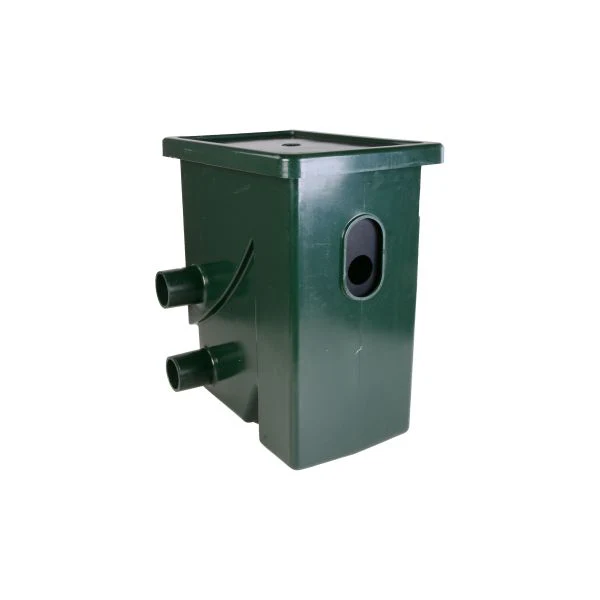 Compact version of the UltraSieve for use only in a pump fed configuration. The Stainless Steel filter element has a width of 24 cm and a length of 40 cm with 300 micron openings. Maximum flow rate is approximately 15 m³/h. Pump inlet: 25/32/40mm hose tail. Housing: dark-green or blue granite coloured PE. Shipped with cover. Output and overflow: 75mm push fittings.